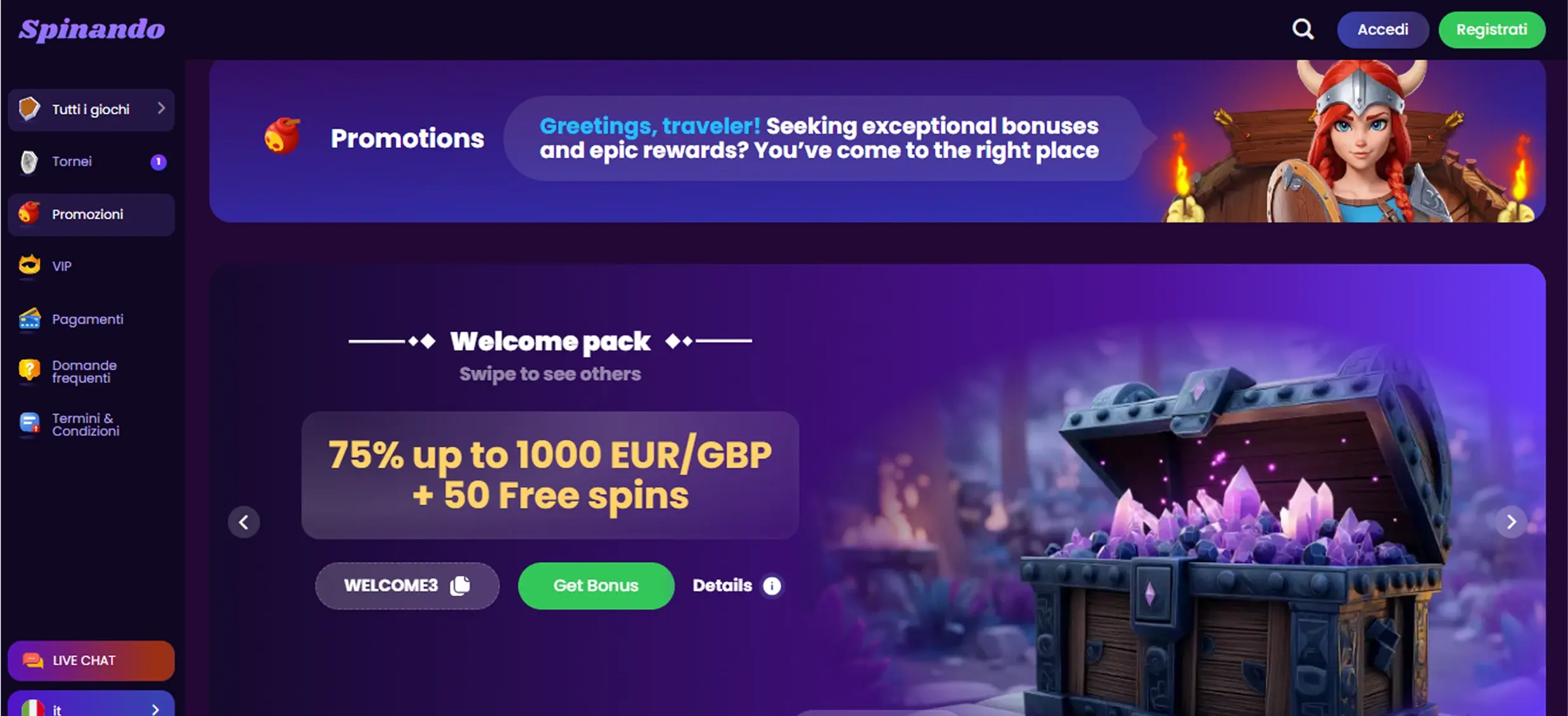 Hos Spinando handler det ikke bare om en god start. Det sørges også for at det er en rekke kampanjer som holder deg på topp uke etter uke. Fremtredende er reloadbonuser hver uke, for ekstra penger og gratisspinn.